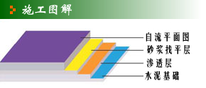 1、基層處理; 2、批涂滲透層; 3、批涂砂漿找平層; 4、鏝涂自流平面涂1-2遍。 |